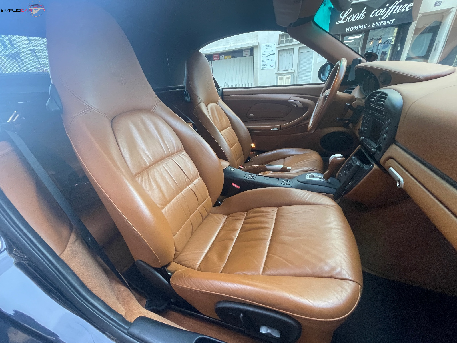Couronne de volant, levier de vitesse et de frein à main et poignées de porte intérieures en cuir