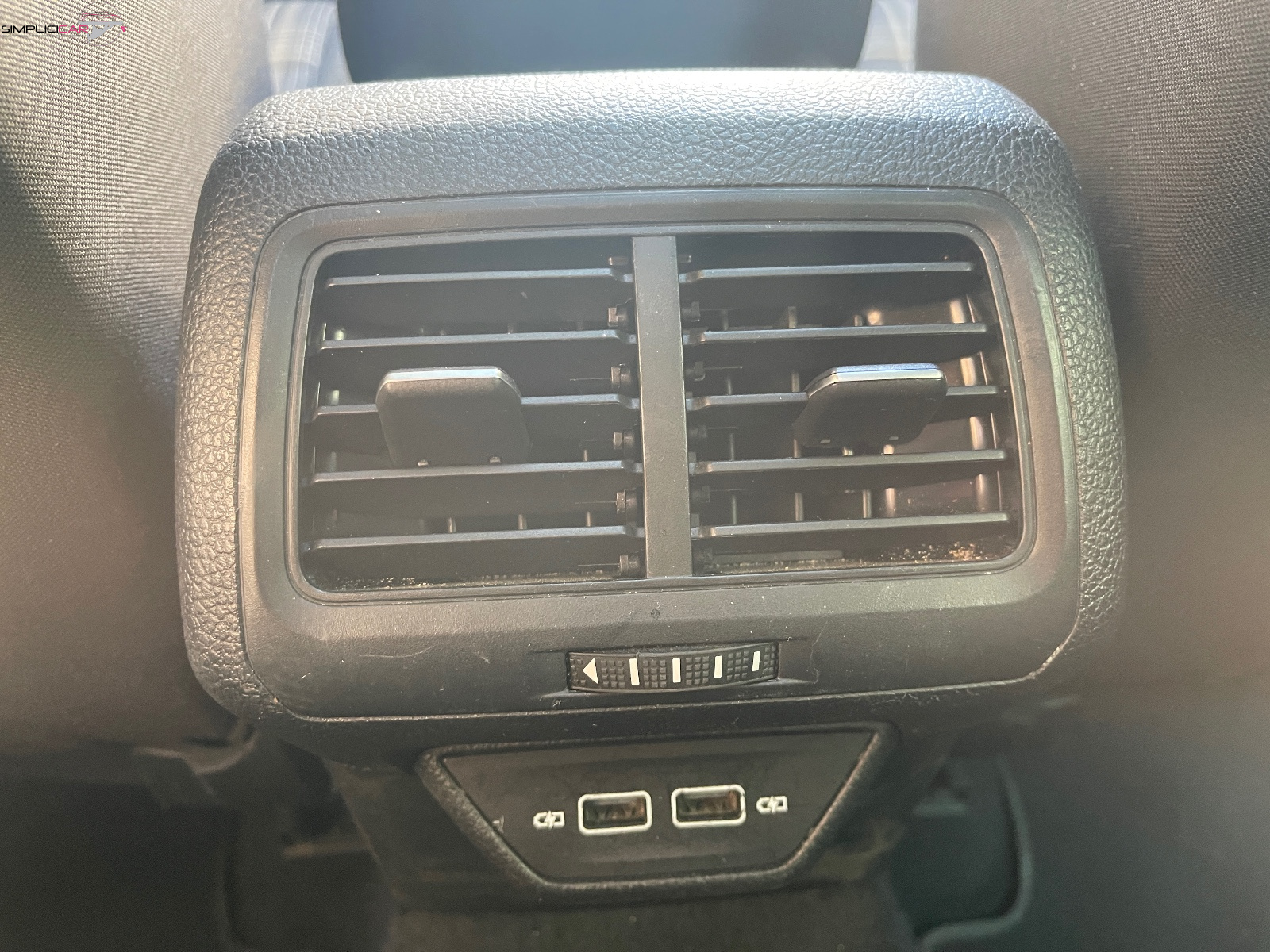 Accoudoir central AV avec compartiment de rangement, 2 porte-gobelets intégrés et 2 bouches d'aération derrière l'accoudoir pour les passagers AR