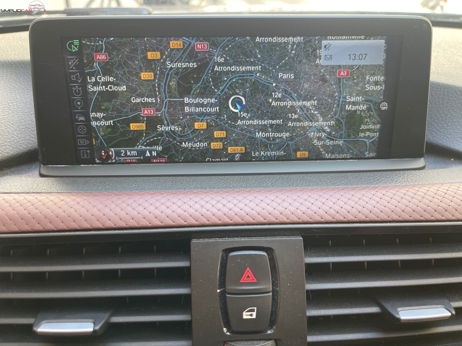 Applications en chrome perlé autour des touches de radio et climatisation
